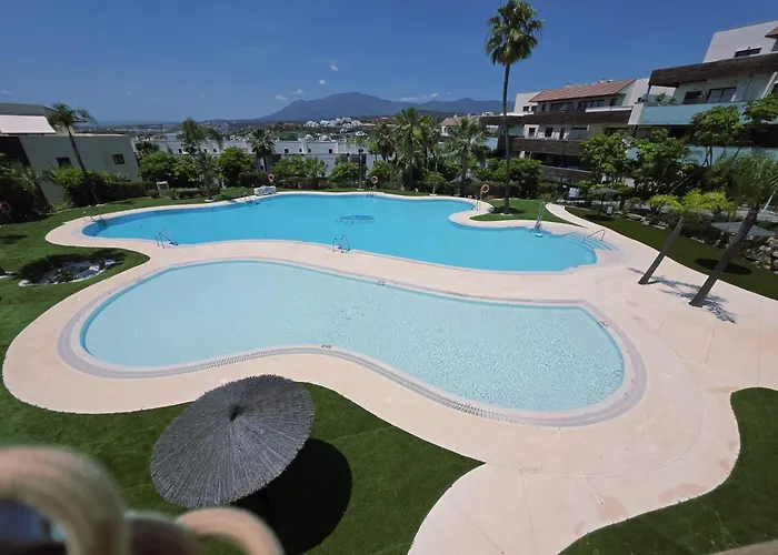 Als u een vroege vlucht hebt vanaf Estepona, ligt 2-slaapkamer Los Flamingos Villa Padierna Apartment Estepona op 70 km van Malaga. Het 165 m² grote appartement bestaat uit een terras waar de gasten kunnen genieten van een kust uitzicht over de zee.